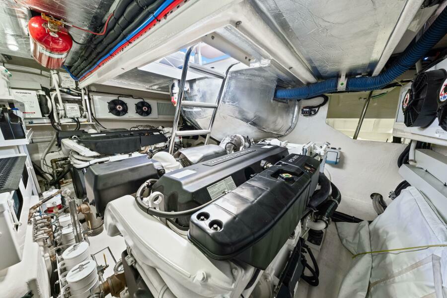 - Twin Volvo IPS 950 D11 Diesel (533kW-725 HP) including low speed mode, DPS, Volvo Autopilot, ACP, line cutters, twin lever electronic controls (helm) and joystick controls x 2 (Helm and Cockpit), two (2) 17 inch 8617 Garmin-Volvo glass bridge screens