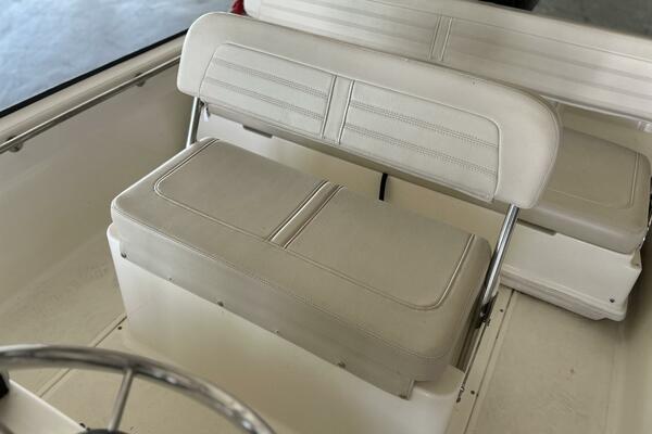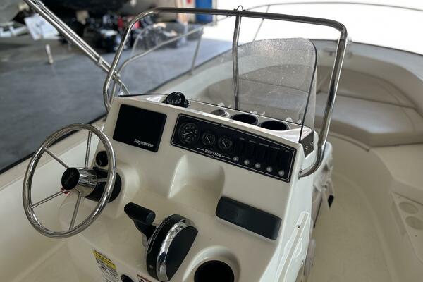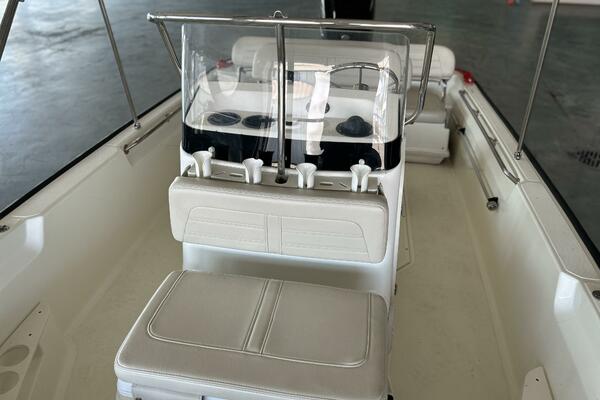 - Center console with acrylic windshield, partitioned storage at the helm, electrical switch panel etc.