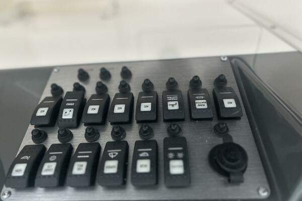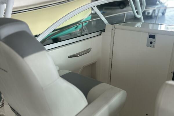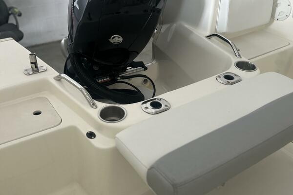 - Dual bilge pumps, high-water alarm, courtesy lights, horn, stainless hardware, battery switch, and navigation lighting