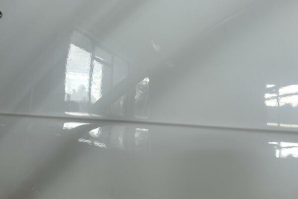 Hand-laid fiberglass with Fibercore stringers, composite transom, V-track hull, stainless-steel fittings, extended swim platform, large anchor locker, boarding ladder, and noise/vibration insulation